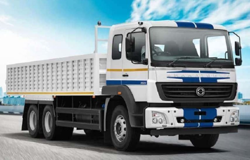 BharatBenz 3123R is the 4 axle 12-wheeler truck with 31 Ton GVW, powered by a 6373 cc DE175BS4 diesel engine with SCR technology. This BharatBenz truck produces a class-leading power of 235 HP and a max torque of 850 Nm with 18.3% gradeability. It comes in two wheelbase options of 5775mm and 6375 mm, BharatBenz 3123R offers loading span options from 24 ft to 28 ft in different vehicle configurations. The 6-cylinder engine and 6-speed gearbox makes BharatBenz 3123R mileage as the best in class and coupled with a large 380 liters fuel tank, this makes BharatBenz truck goes long miles without having to think about refueling. Â It offers both fixed side deck and high side deck load body options. The truck comes with a warranty of 6 years and the ex-showroom price of BharatBenz 3123R is of Rs 29.7 Lacs.