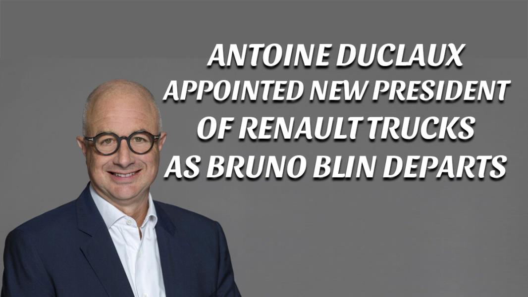 Antoine Duclaux will succeed Bruno Blin as President of Renault Trucks on November 1, marking a leadership transition after Blin’s 10-year tenure.