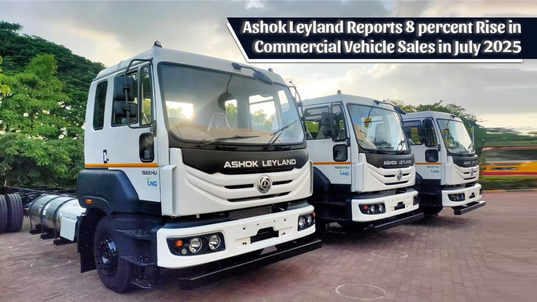 Ashok Leyland reports 8% CV sales growth in July 2025, driven by strong demand for trucks and pickups.