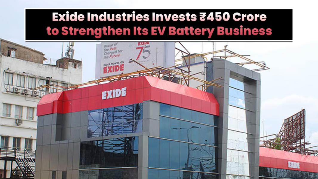 Exide Industries invested ₹450 crore in its EV battery unit to expand production and support future growth in electric vehicle market in India.