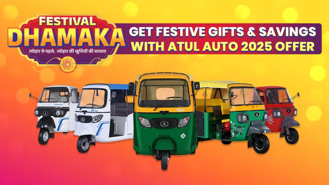 Atul Auto launches Festival Dhamaka Offer 2025 with savings up to ₹25,000, lower GST at 18%, and exciting festive gifts on its popular 3-wheeler and electric 3-wheeler models.