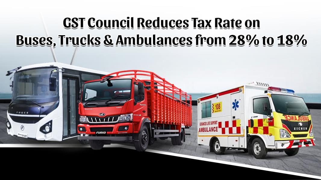 GST Council Reduces Tax Rate on Buses, Trucks and Ambulances from 28% to 18%