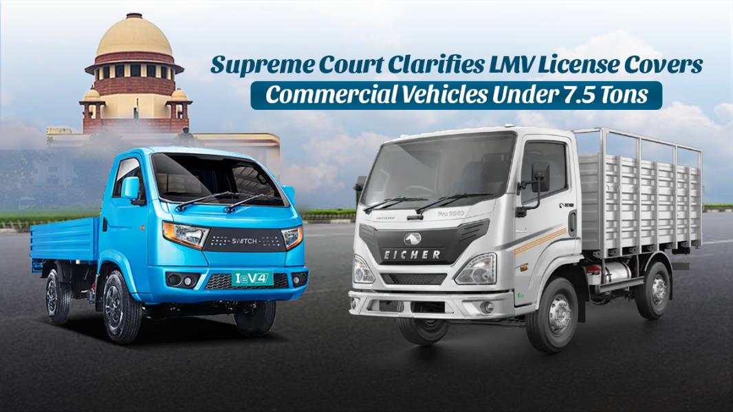 Supreme Court confirms LMV license holders can drive commercial vehicles under 7.5 tons, offering relief to small truck drivers.