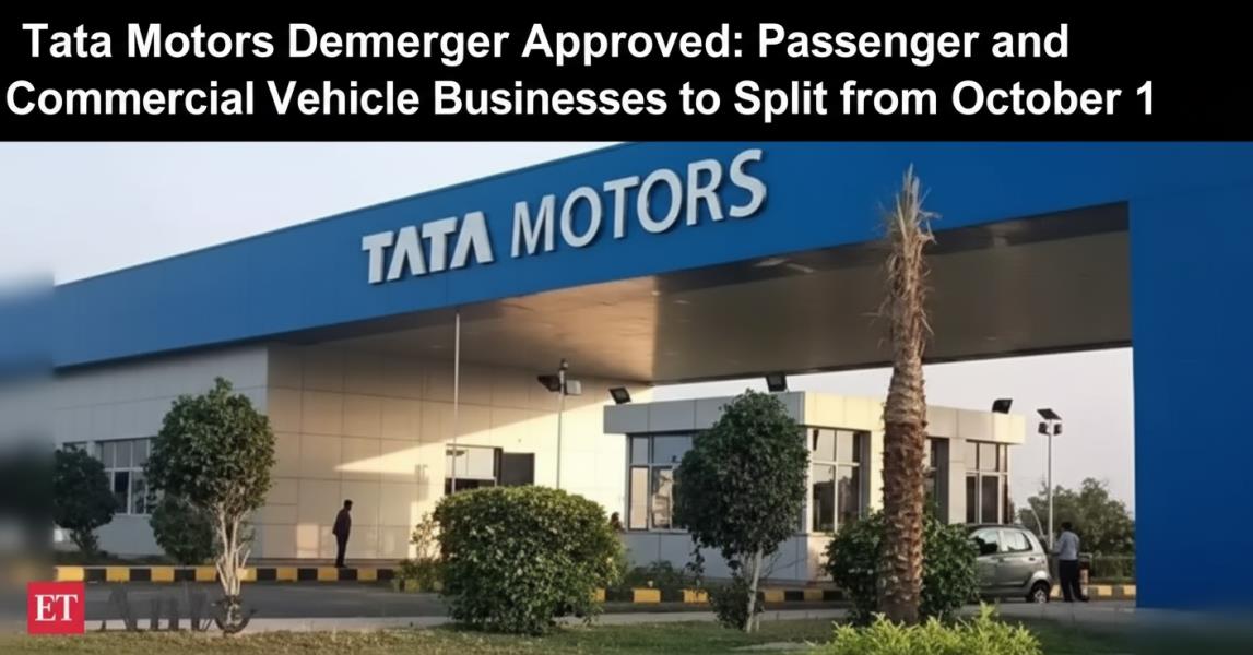 Tata Motors demerger approved; commercial and passenger vehicle businesses to operate separately under TMPV and TMLCV. Investors get 1:1 share in new company.