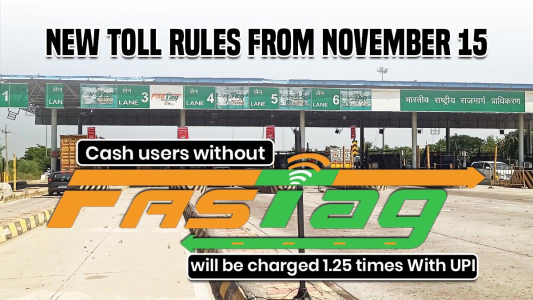 Ans. From November 15, 2025, drivers without FASTag can pay tolls via UPI at 1.25 times the normal fee instead of paying double in cash.