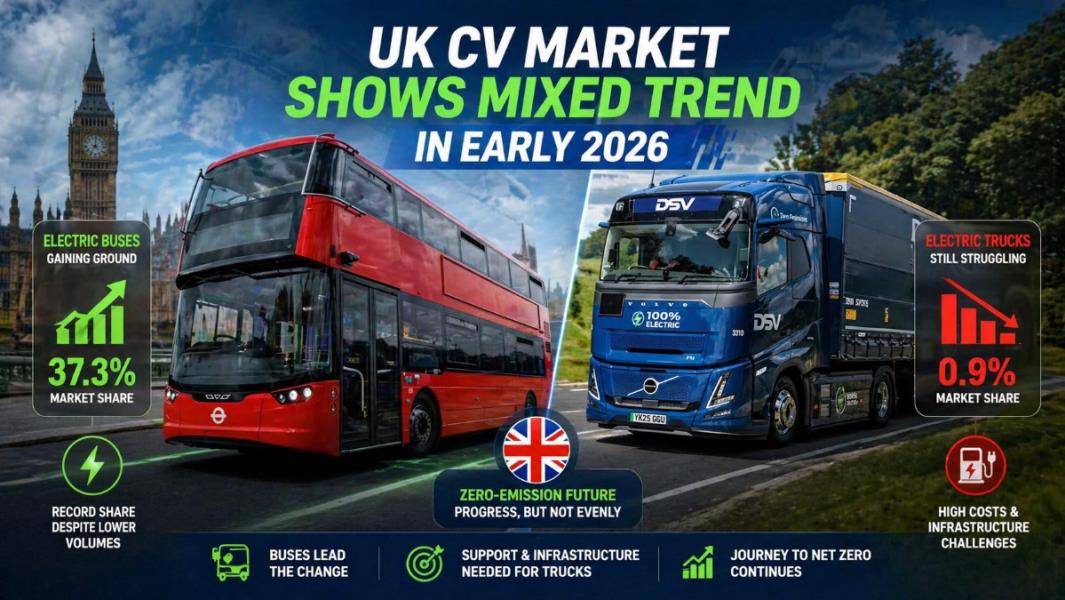 The commercial vehicle market in the UK is having a mixed start to 2026. People are really taking notice of buses.. The truck part of the commercial vehicle market is still having a tough time. The newest information shows that people are moving to vehicles that do not make any emissions. However, this change is not happening at the speed for every type of vehicle. The commercial vehicle market is an example of this. The transition to zero-emission vehicles is not easy for heavy trucks, in the commercial vehicle market.